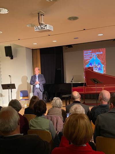 100 Gäste bei der Auftaktveranstaltung zur Ausstellung "200 Jahre Familie von Hirsch in Planegg" in der Musikschule