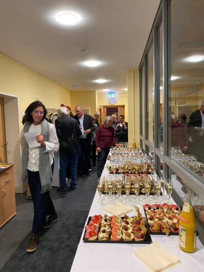 Nach den drei Musikstücken von Schülerinnen, Schülern und Lehrerinnen der Musikschule und den Reden von Philipp Pollems, Bürgermeister Hermann Nafziger, Barbara Reinicke und Baron Philipp von Hirsch konnten sich die Gäste am Büfett noch mit Fingerfood und Getränken stärken, bevor sie ein paar Schritte in die Nachbarschaft machten, um im Archiv Ausstellung zu bewundern.
