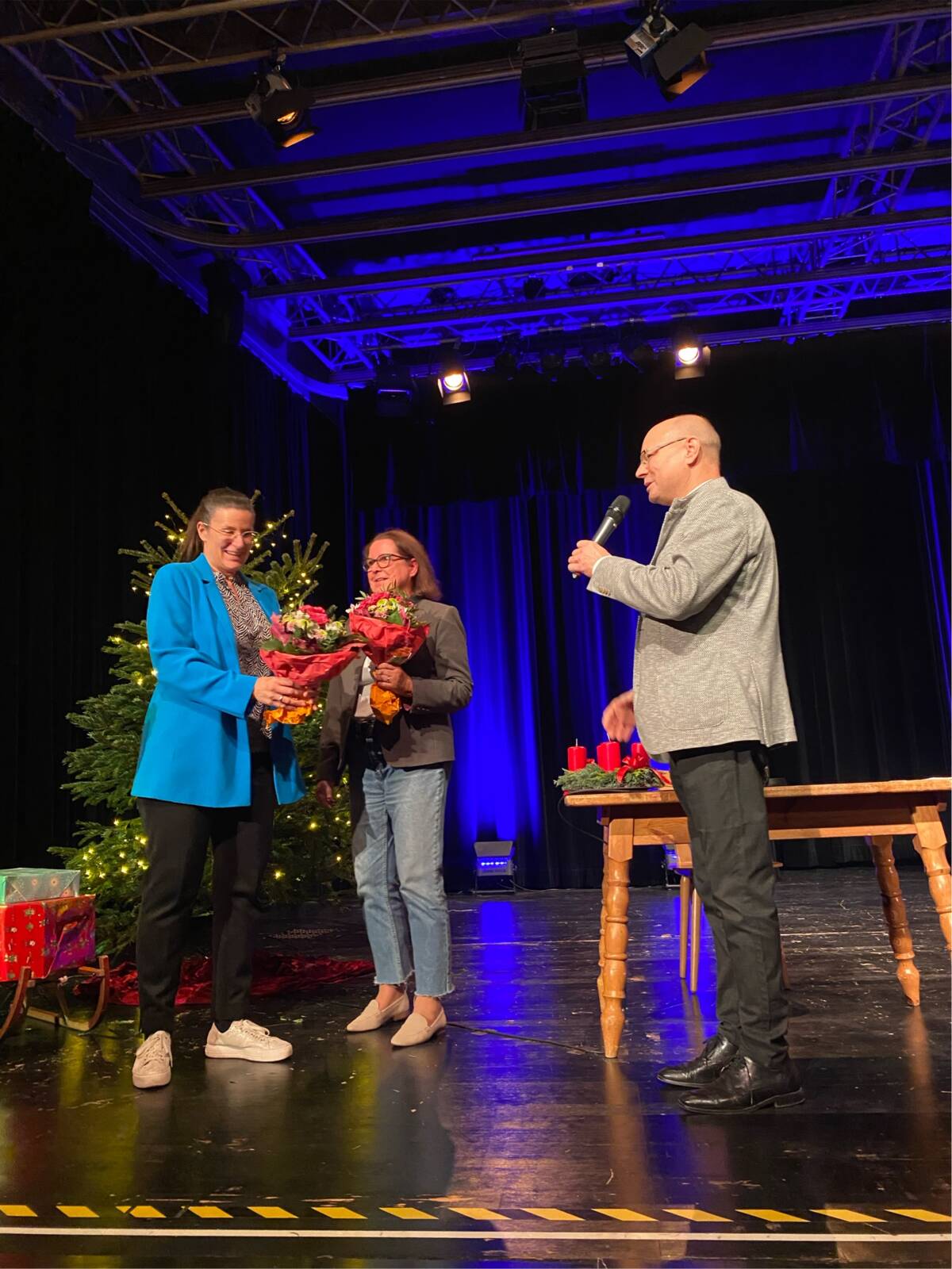 Bürgermeister Hermann Nafziger betonte in seiner Begrüßung die Bedeutung, die dieses Dankeschön für die Gemeinde hat. Und er dankte den beiden Organisatorinnen Caro Werkmeister und Claudia Heuermann mit einem Blumenstrauß für die immer liebevoll und professionell organsierten Veranstaltungen.